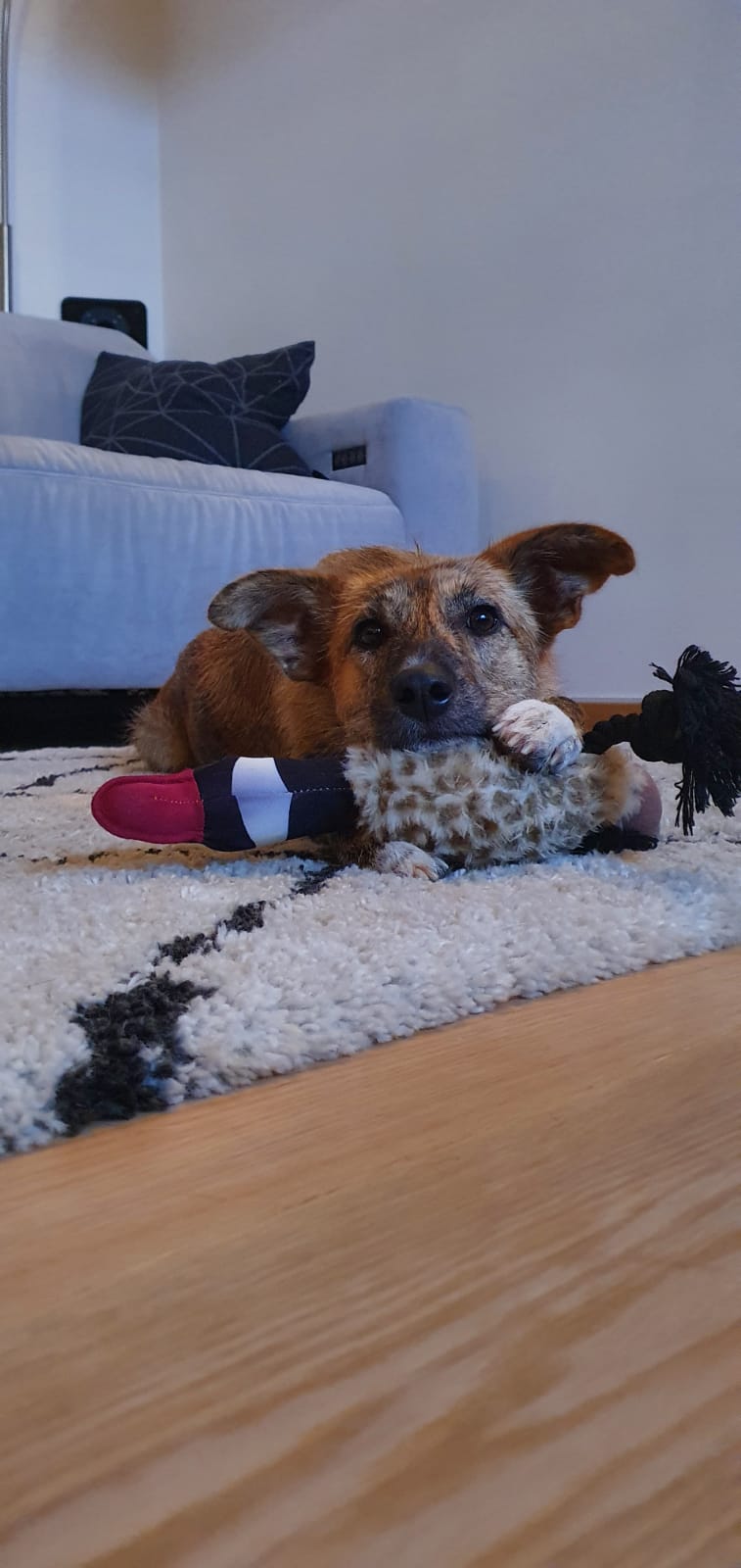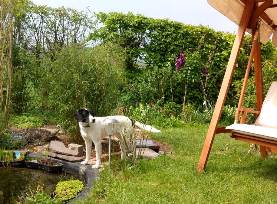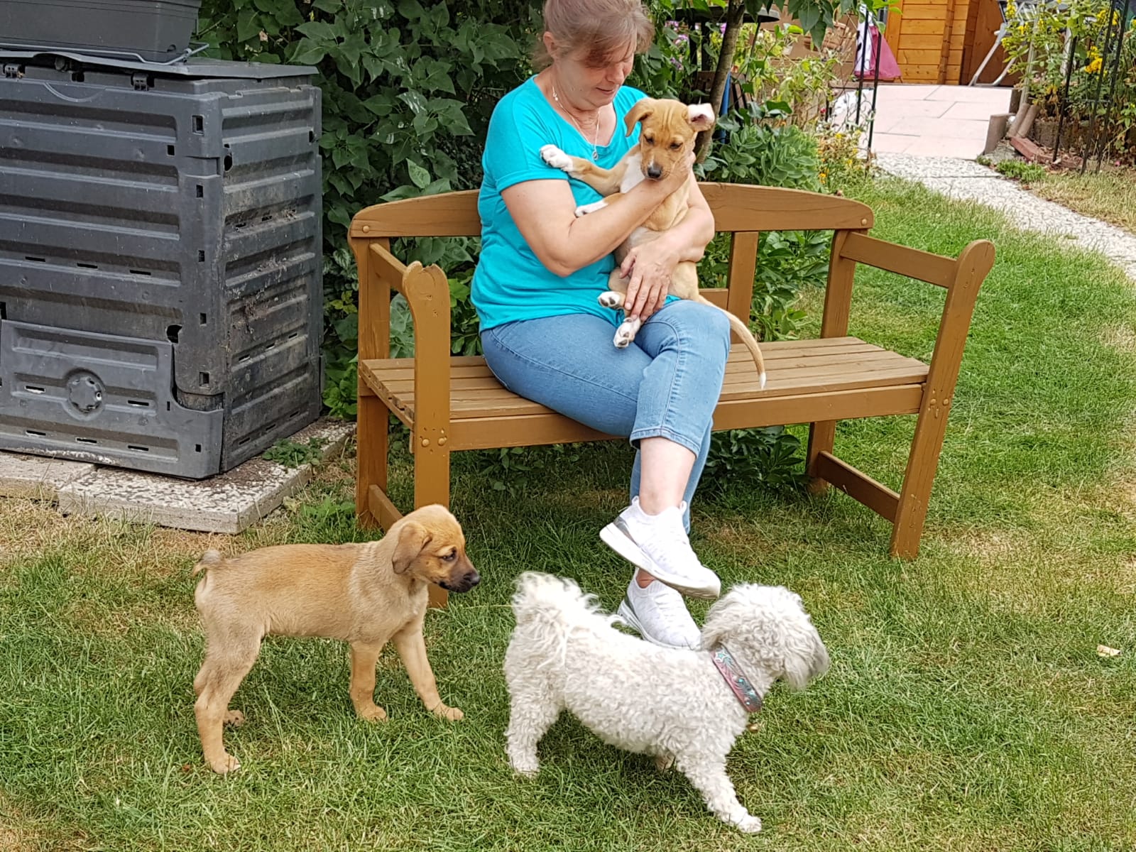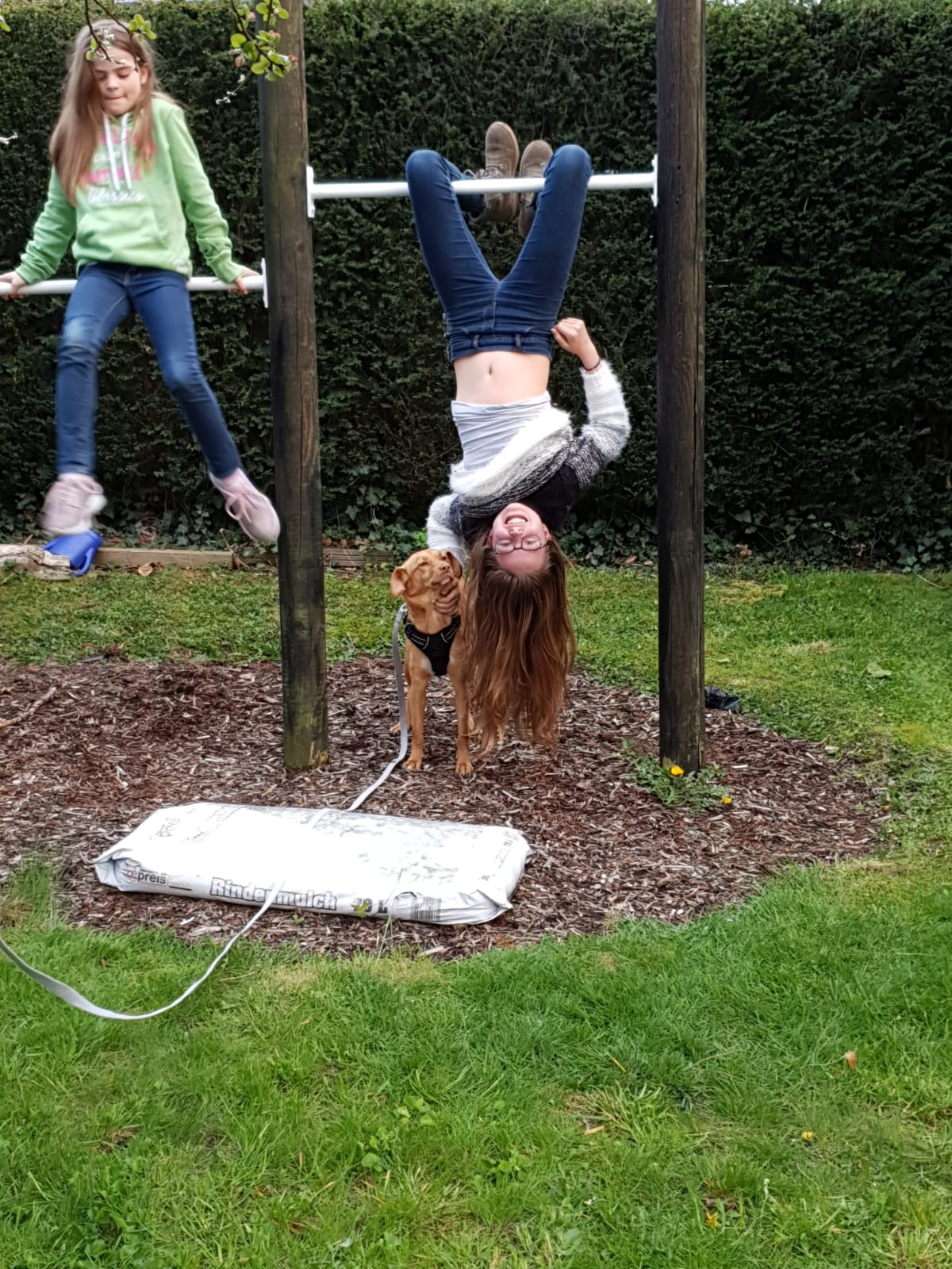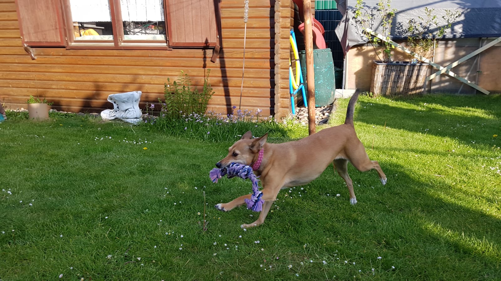 India geht es gut und sie hat sich toll eingelebt. Gefühlt ist sie schon immer ein Teil unserer Familie gewesen. Das Spielen hat sie für sich entdeckt und sie fordert die Kinder lautstark zum Spielen und Toben im Garten auf. Ist gerade doch keins in der Nähe, rennt sie dem Ball selber hinterher, wirft ihn in die Luft und zieht glücklich mit ihrer Beute von dannen. Ganz liebe Grüße