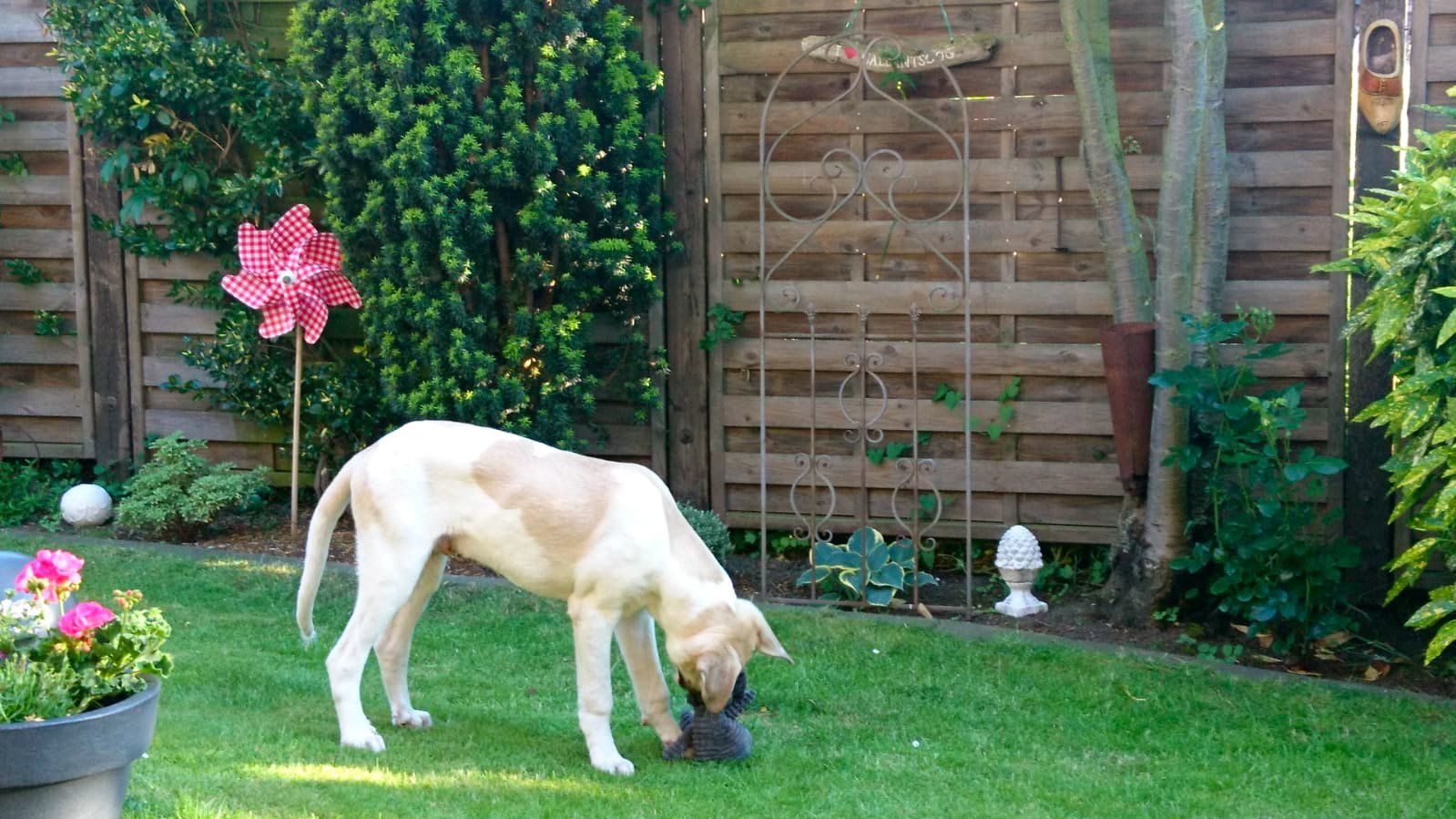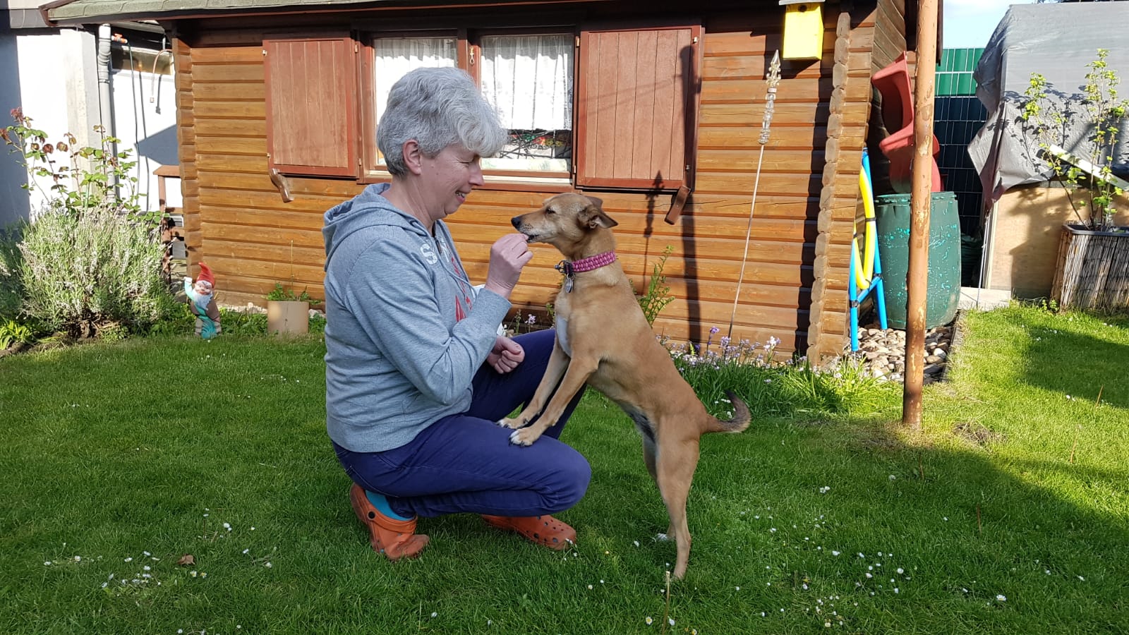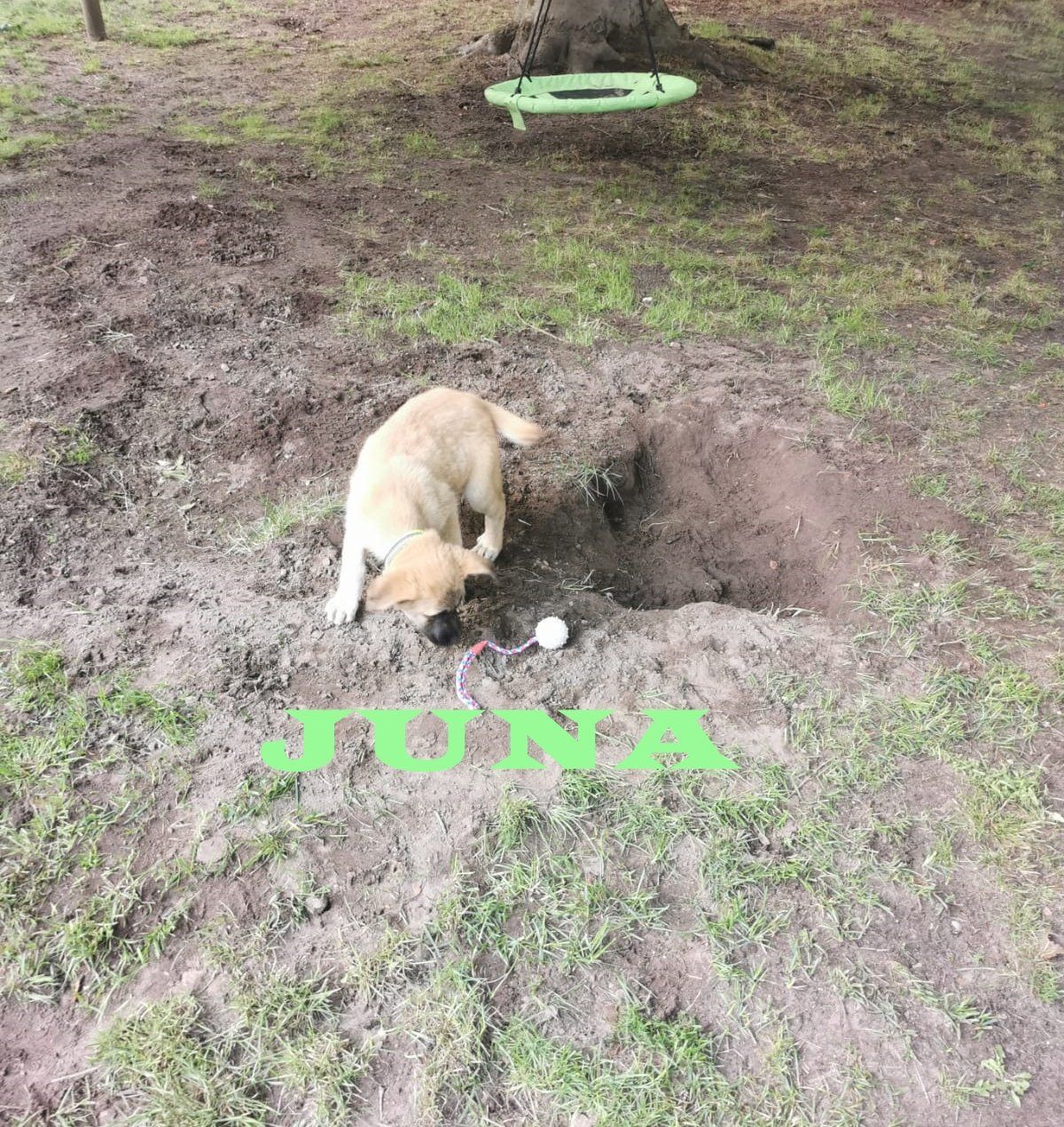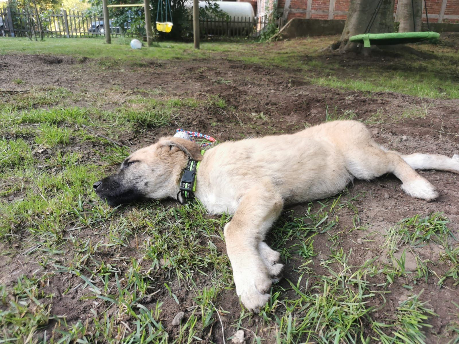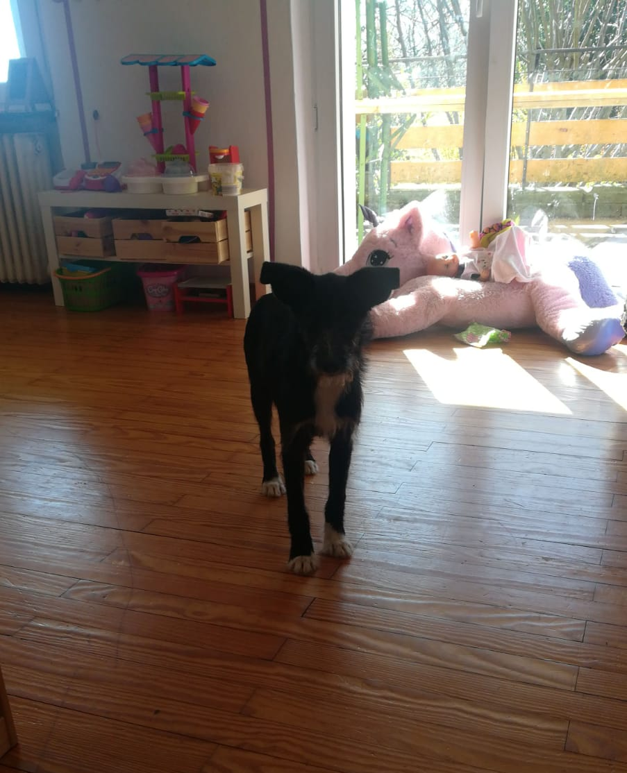 India geht es gut und sie hat sich toll eingelebt. Gefühlt ist sie schon immer ein Teil unserer Familie gewesen. Das Spielen hat sie für sich entdeckt und sie fordert die Kinder lautstark zum Spielen und Toben im Garten auf. Ist gerade doch keins in der Nähe, rennt sie dem Ball selber hinterher, wirft ihn in die Luft und zieht glücklich mit ihrer Beute von dannen. Ganz liebe Grüße