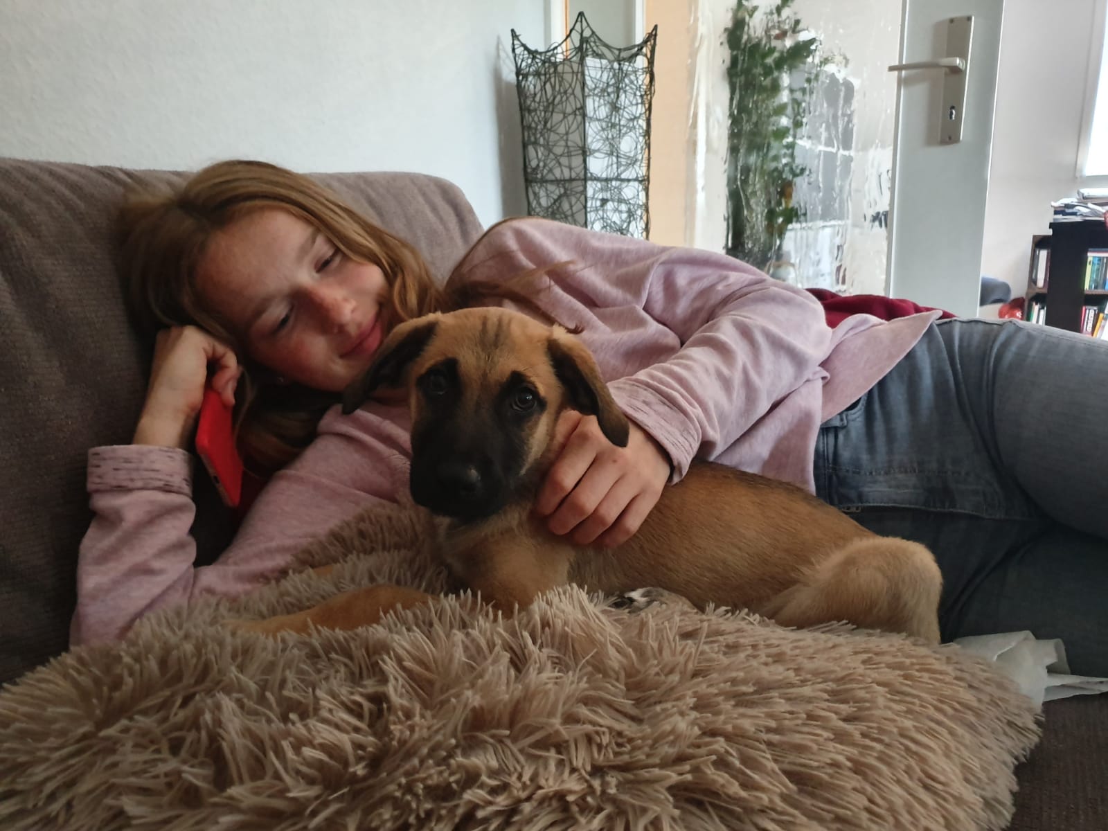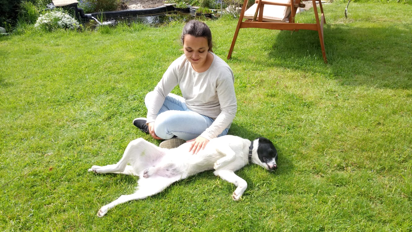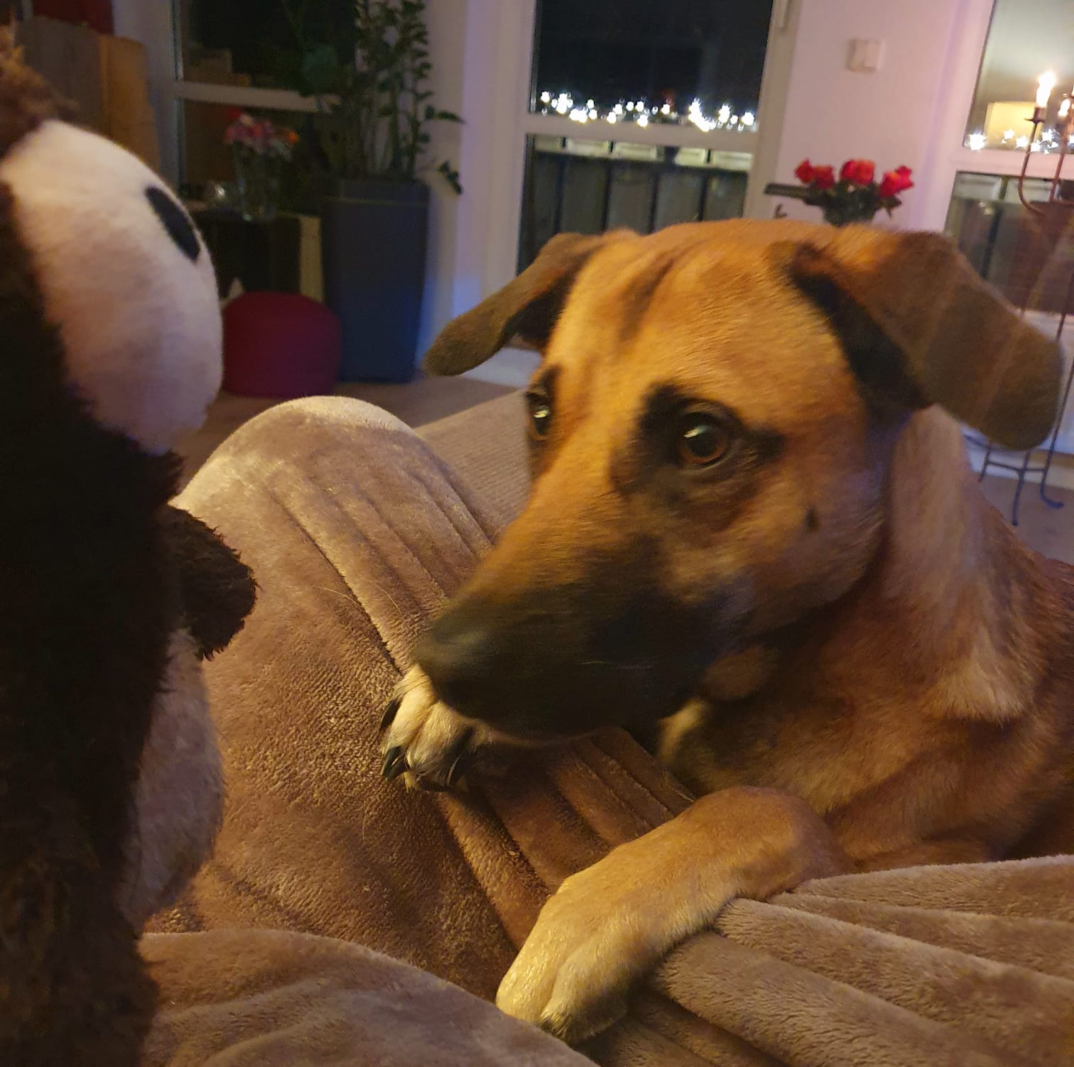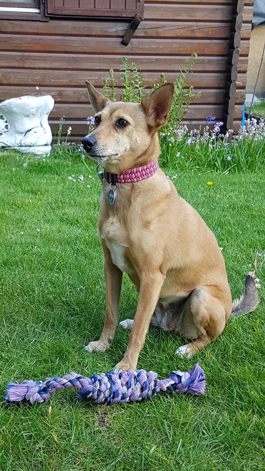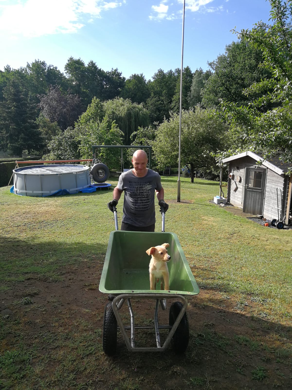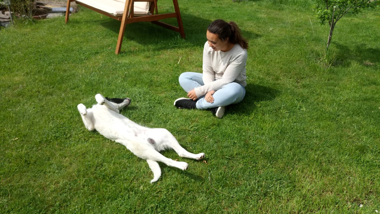 India geht es gut und sie hat sich toll eingelebt. Gefühlt ist sie schon immer ein Teil unserer Familie gewesen. Das Spielen hat sie für sich entdeckt und sie fordert die Kinder lautstark zum Spielen und Toben im Garten auf. Ist gerade doch keins in der Nähe, rennt sie dem Ball selber hinterher, wirft ihn in die Luft und zieht glücklich mit ihrer Beute von dannen. Ganz liebe Grüße
