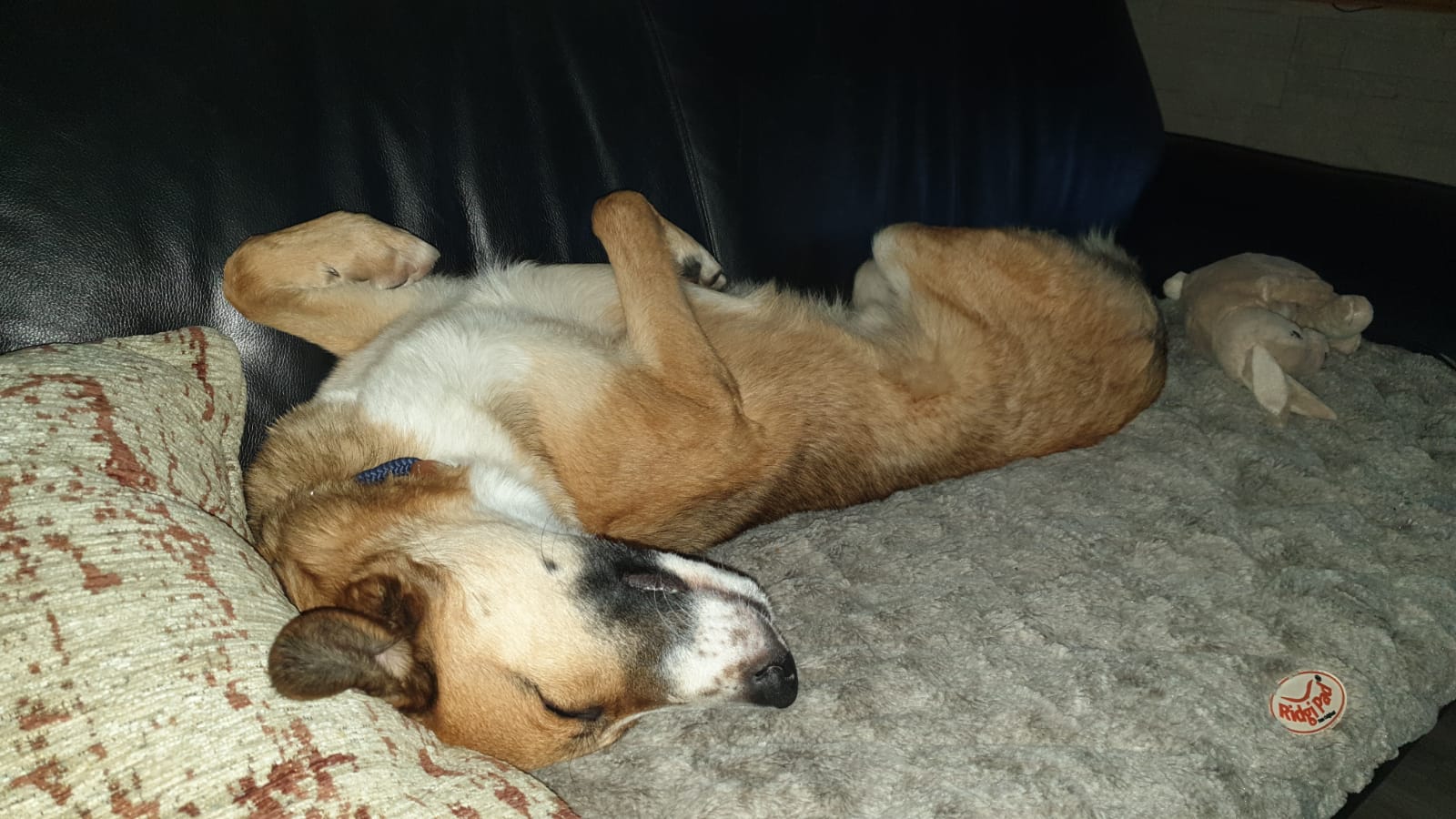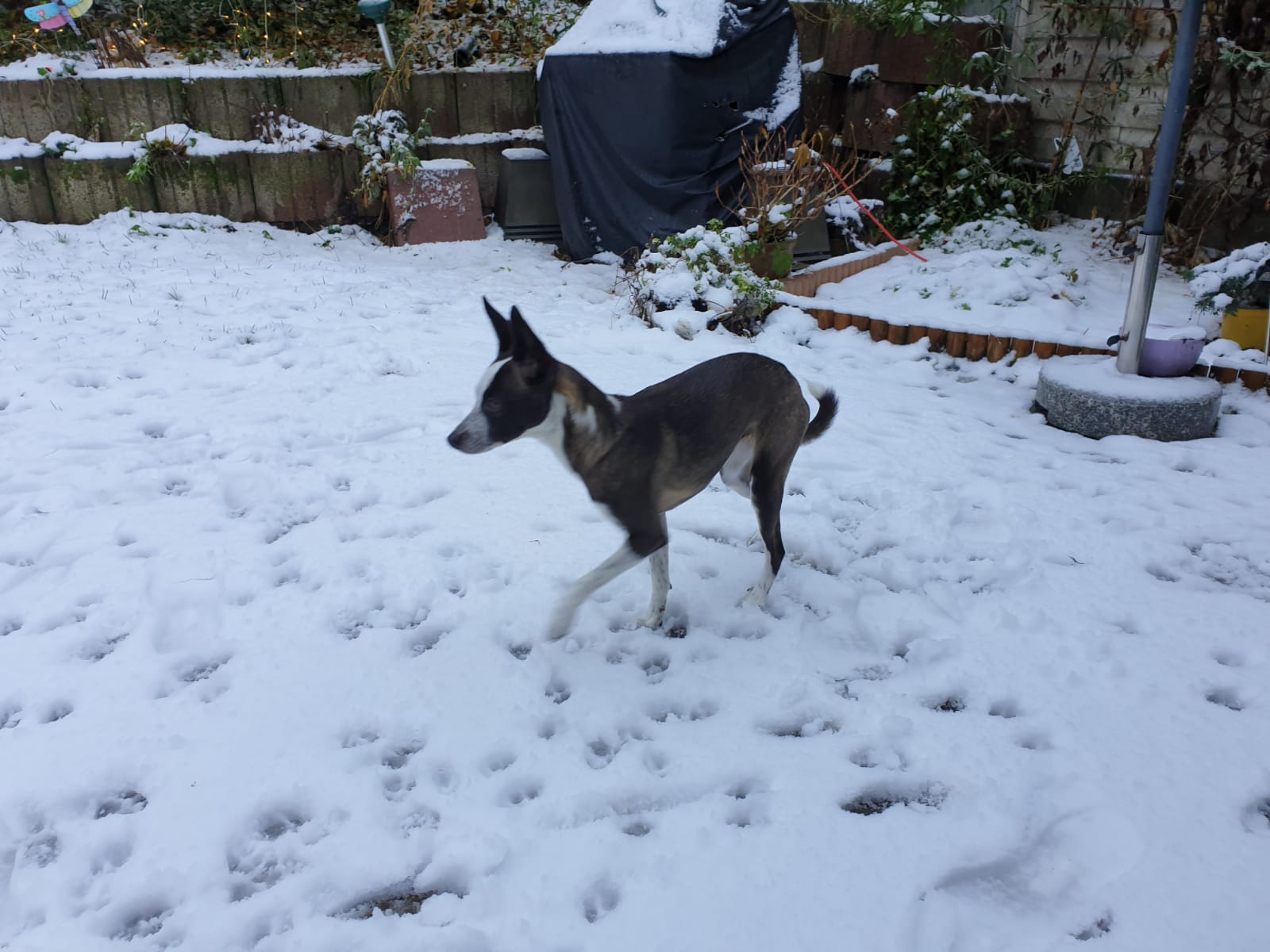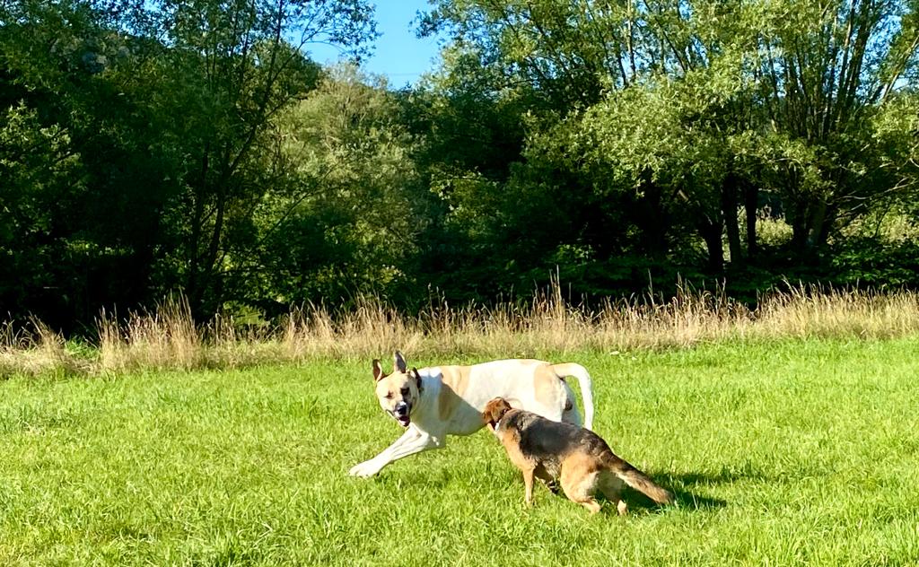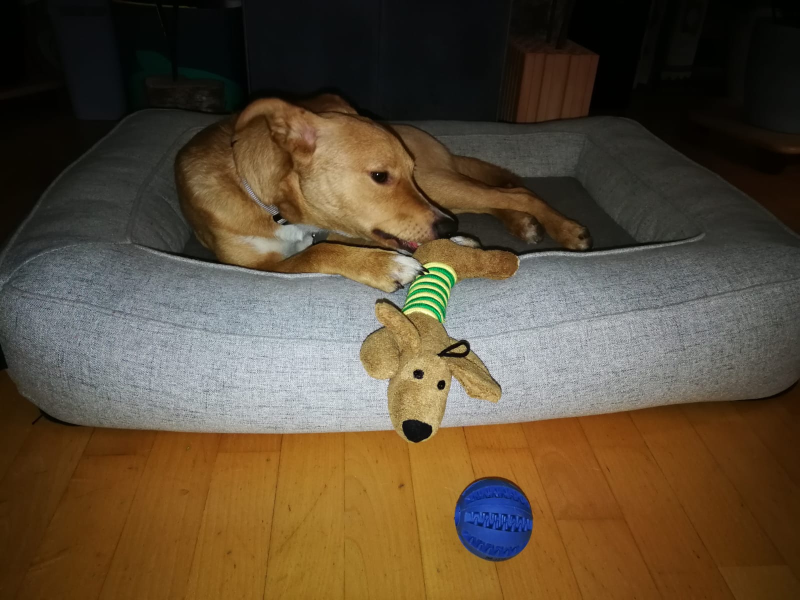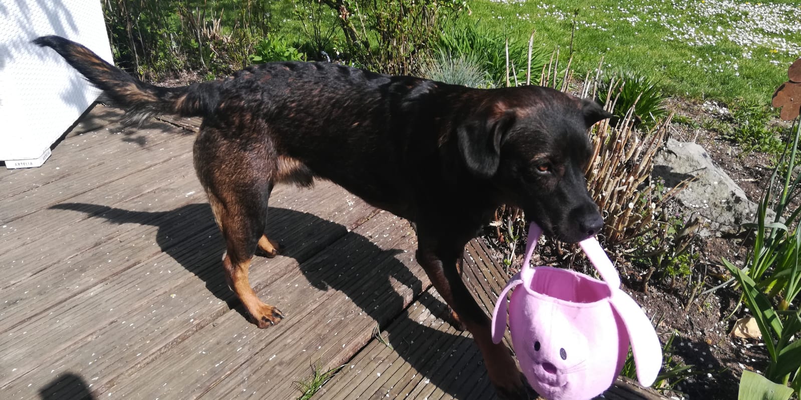 India geht es gut und sie hat sich toll eingelebt. Gefühlt ist sie schon immer ein Teil unserer Familie gewesen. Das Spielen hat sie für sich entdeckt und sie fordert die Kinder lautstark zum Spielen und Toben im Garten auf. Ist gerade doch keins in der Nähe, rennt sie dem Ball selber hinterher, wirft ihn in die Luft und zieht glücklich mit ihrer Beute von dannen. Ganz liebe Grüße