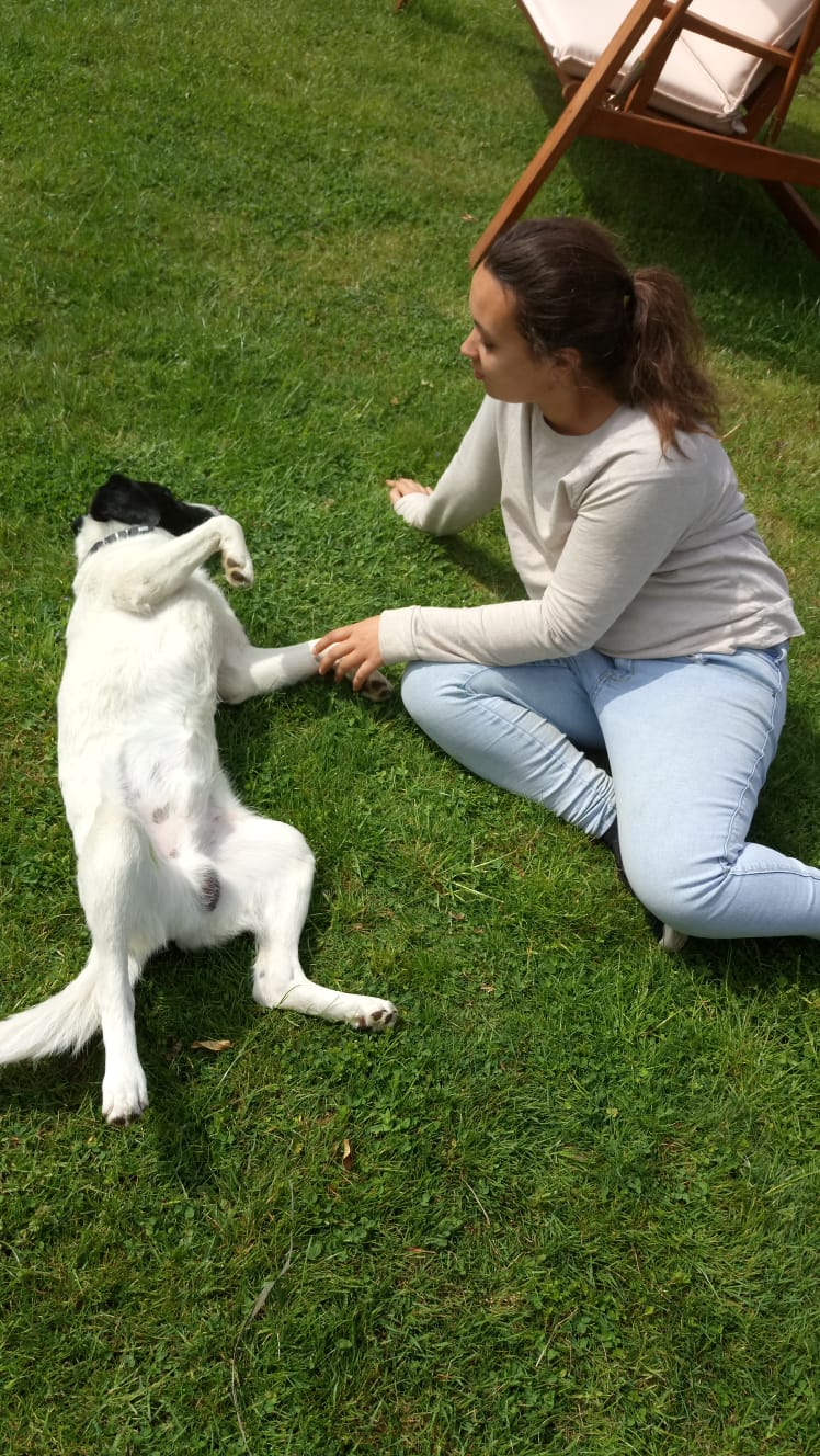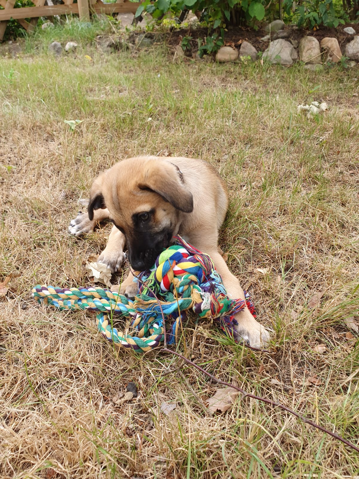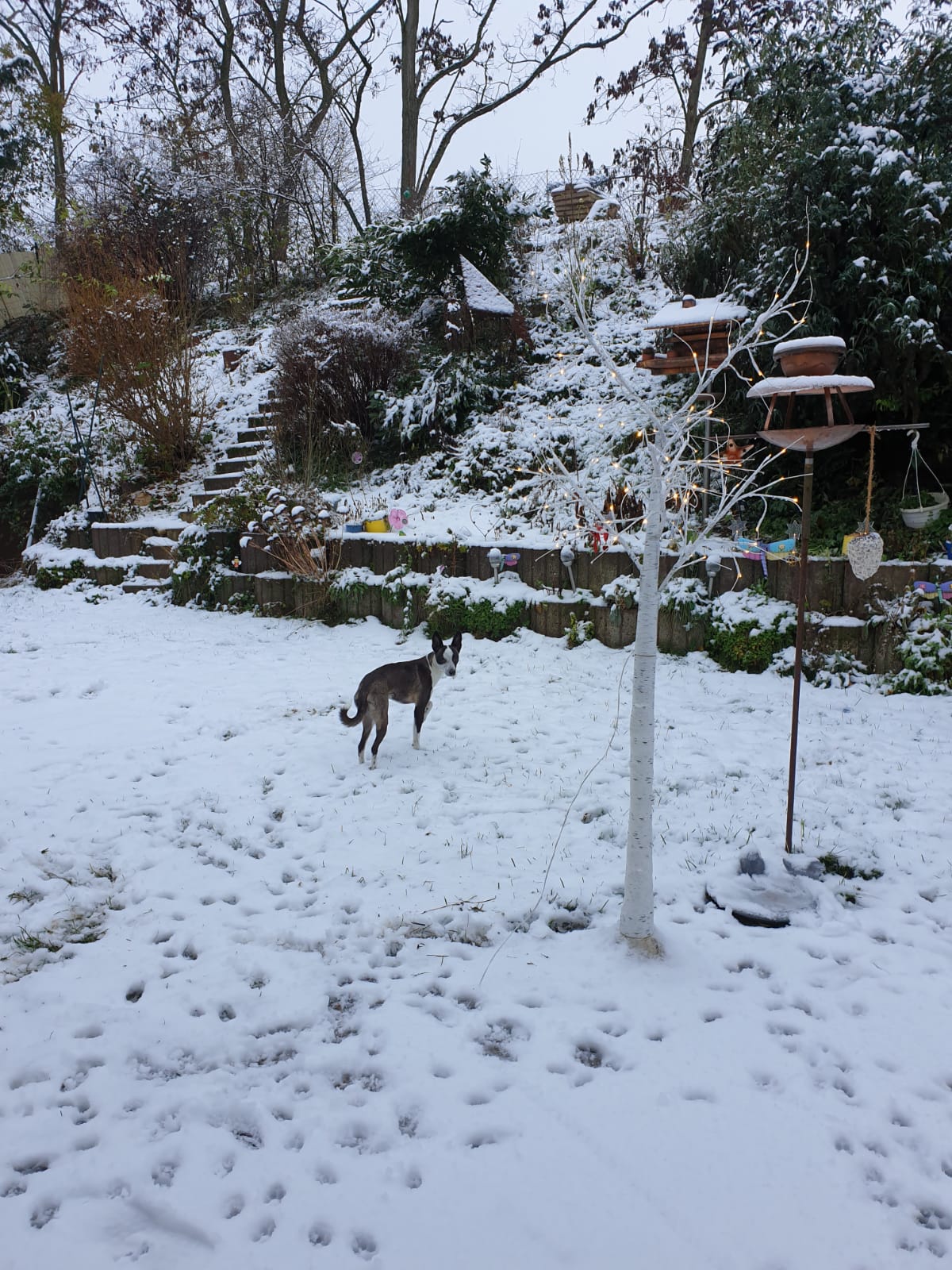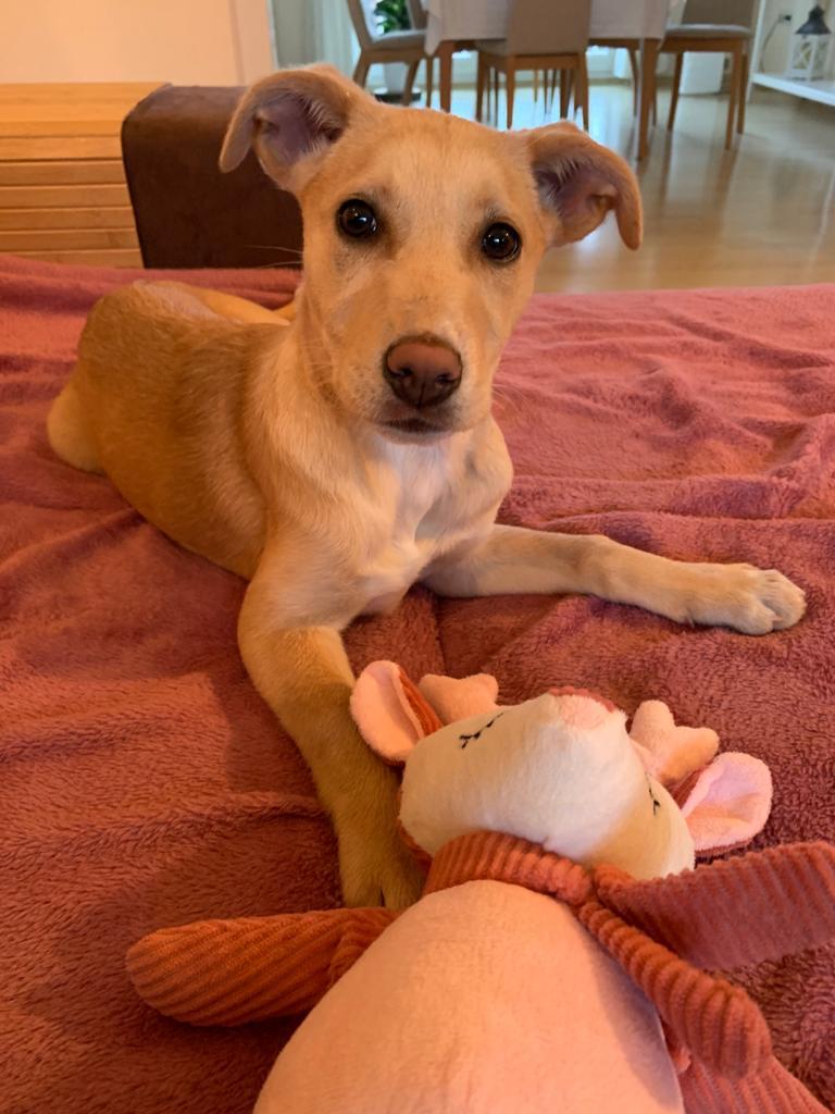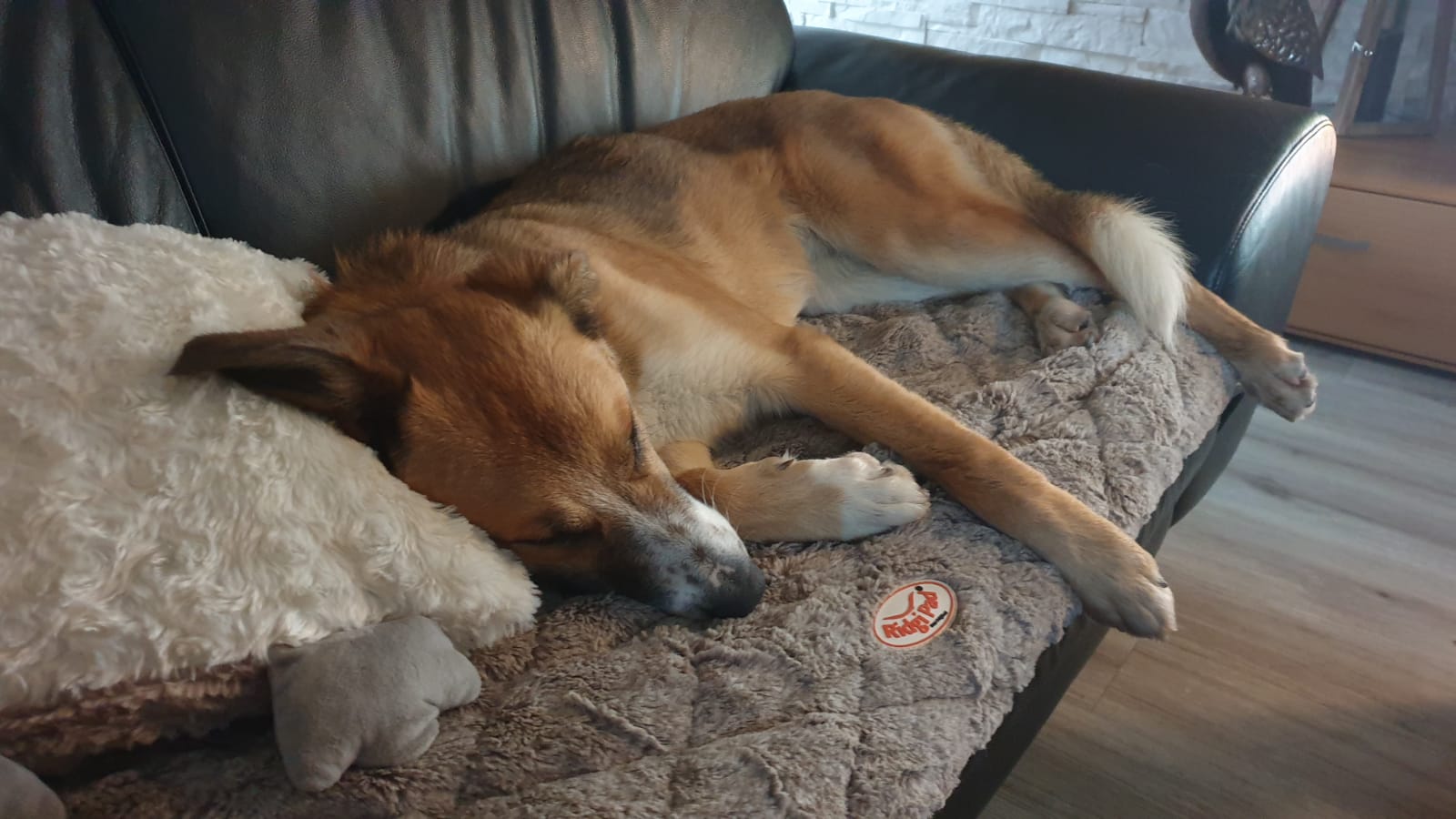 India geht es gut und sie hat sich toll eingelebt. Gefühlt ist sie schon immer ein Teil unserer Familie gewesen. Das Spielen hat sie für sich entdeckt und sie fordert die Kinder lautstark zum Spielen und Toben im Garten auf. Ist gerade doch keins in der Nähe, rennt sie dem Ball selber hinterher, wirft ihn in die Luft und zieht glücklich mit ihrer Beute von dannen. Ganz liebe Grüße