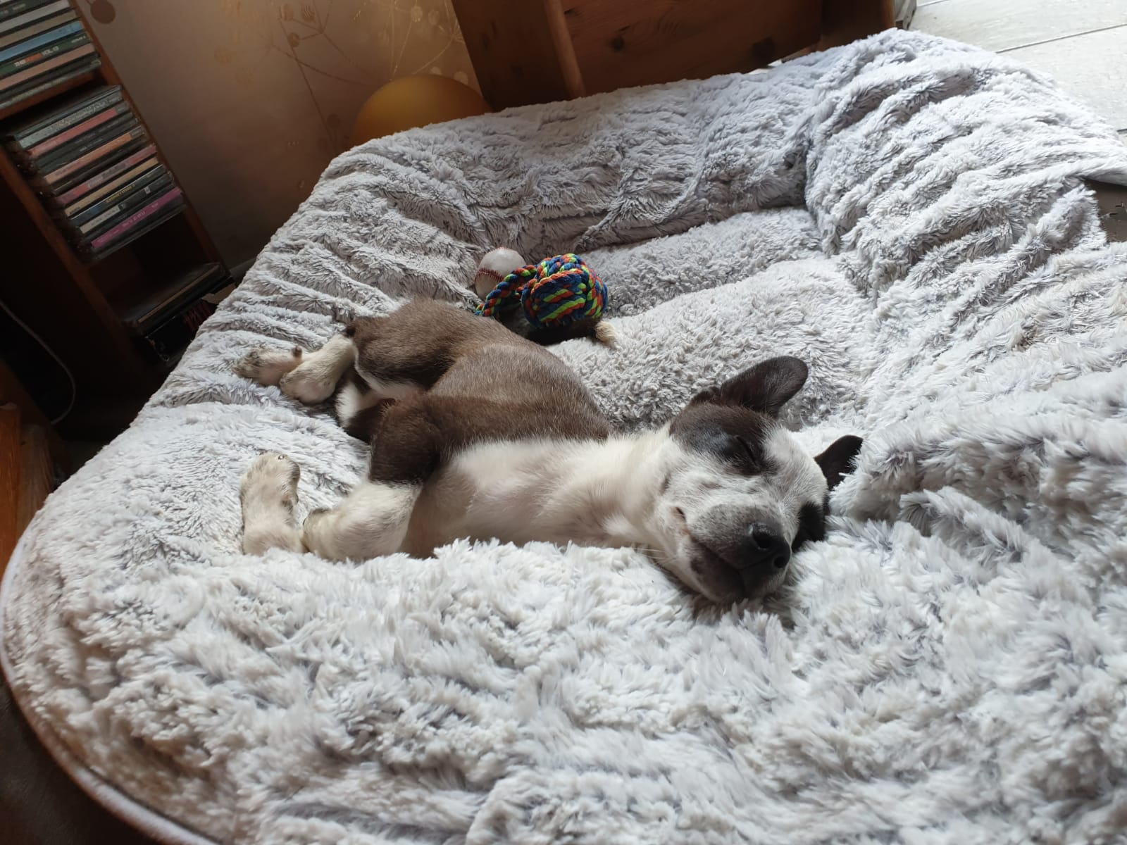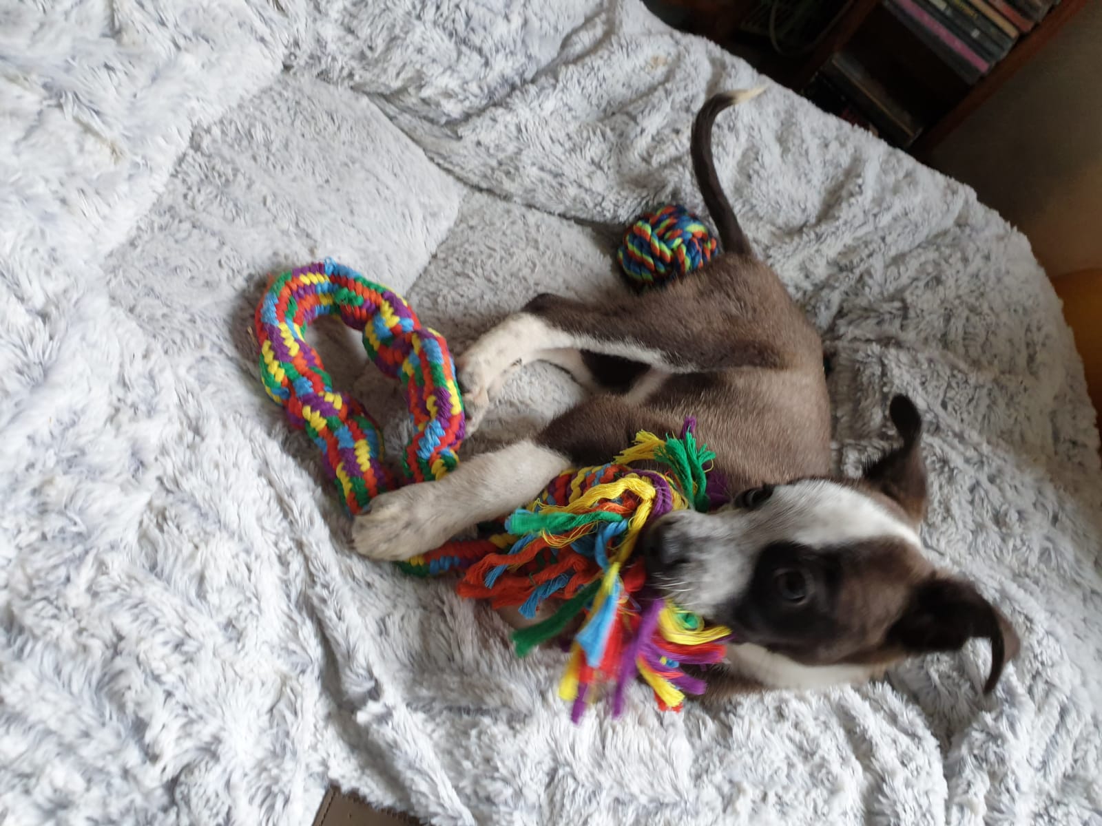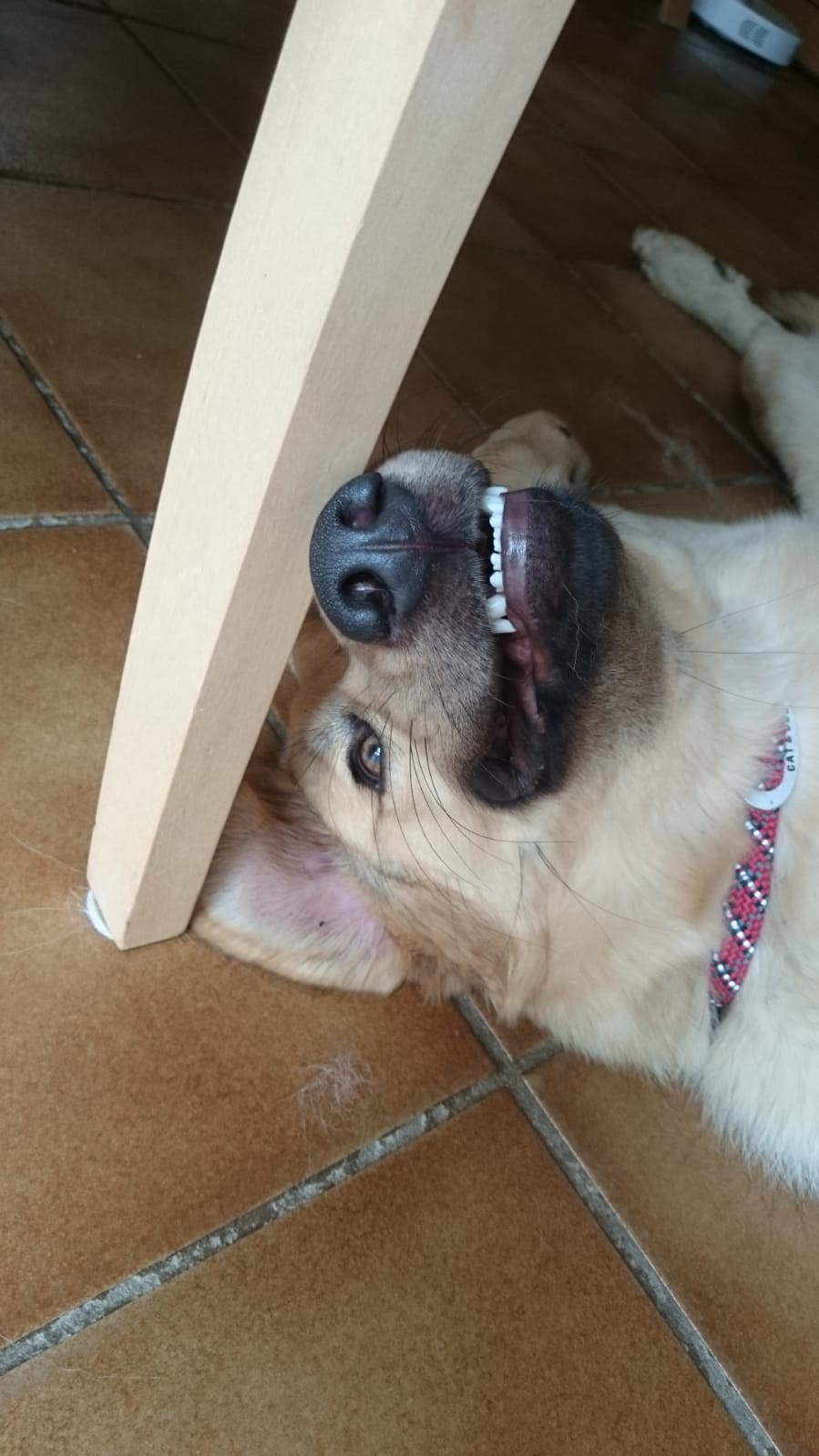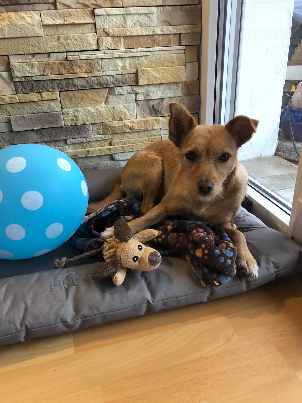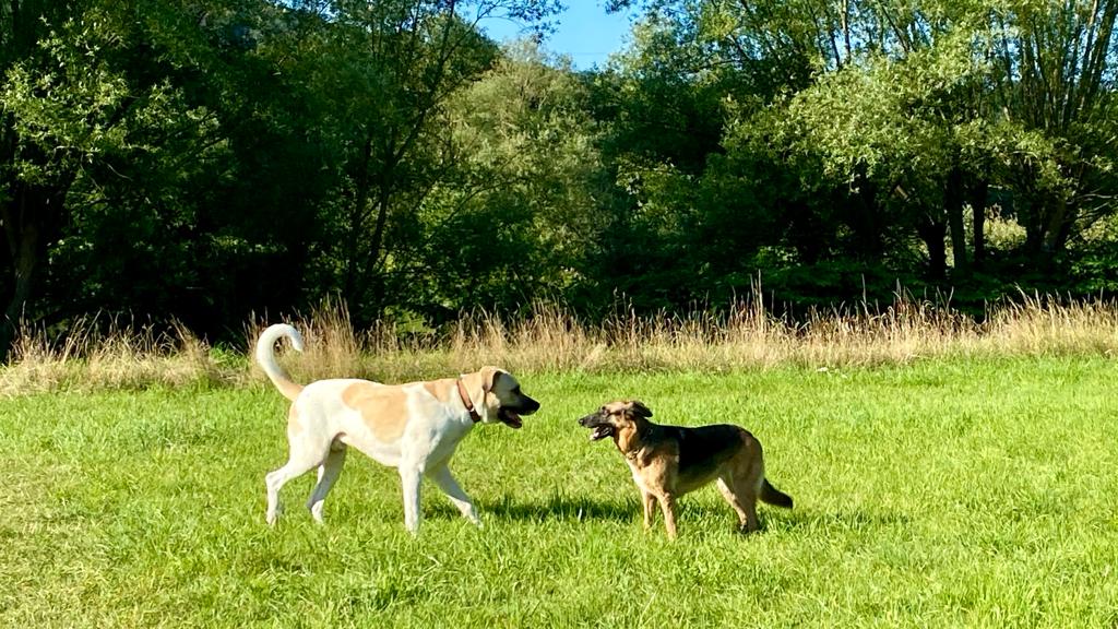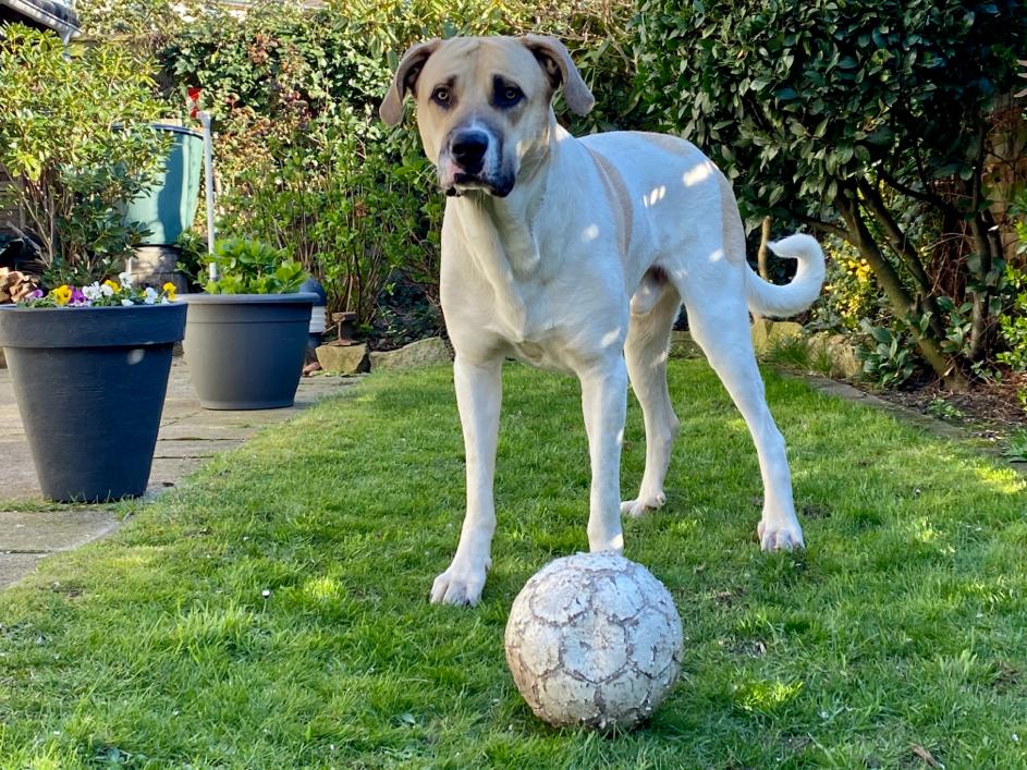 India geht es gut und sie hat sich toll eingelebt. Gefühlt ist sie schon immer ein Teil unserer Familie gewesen. Das Spielen hat sie für sich entdeckt und sie fordert die Kinder lautstark zum Spielen und Toben im Garten auf. Ist gerade doch keins in der Nähe, rennt sie dem Ball selber hinterher, wirft ihn in die Luft und zieht glücklich mit ihrer Beute von dannen. Ganz liebe Grüße
