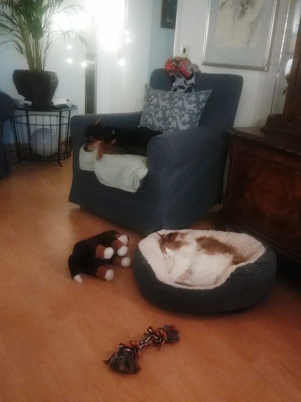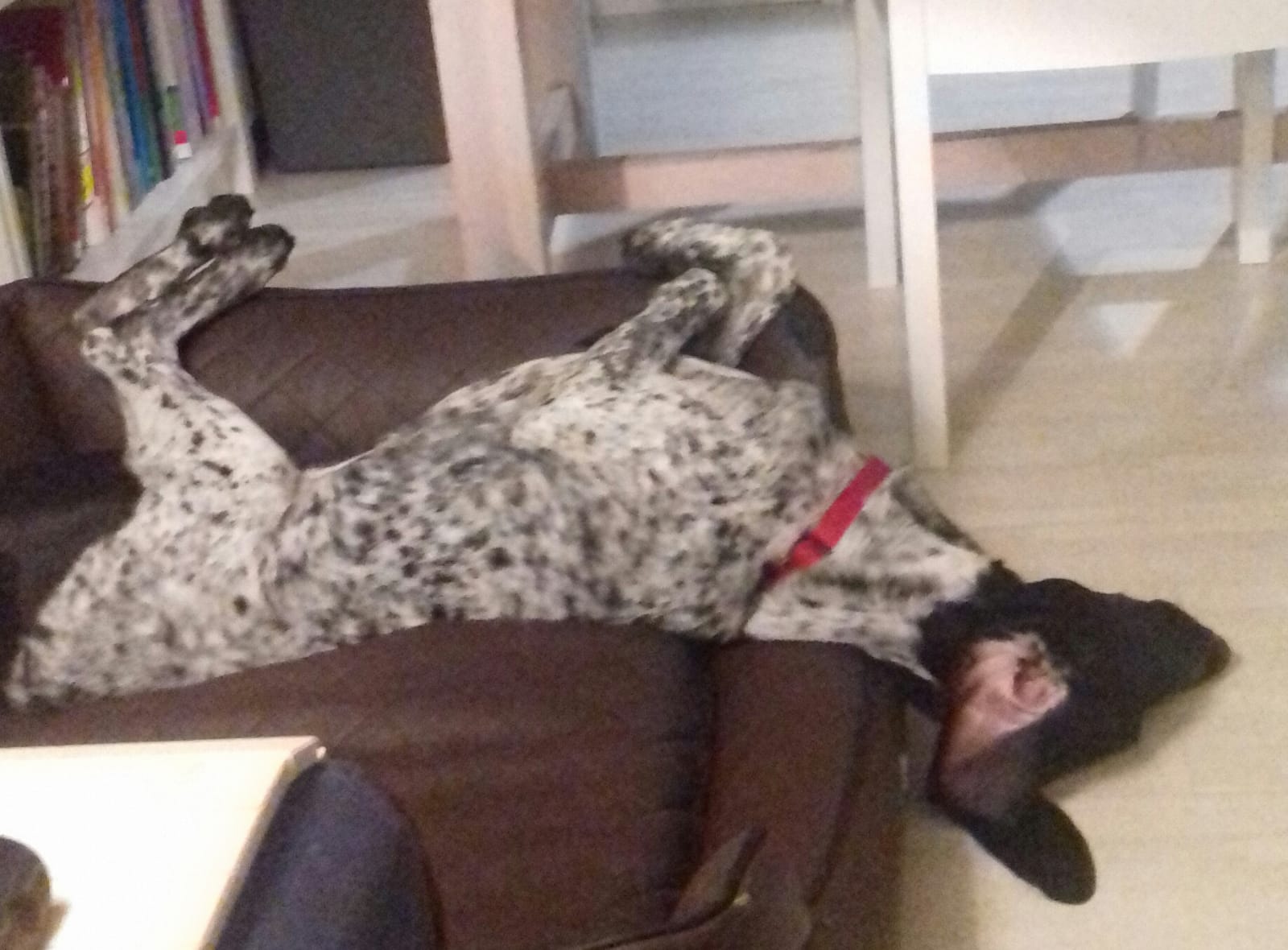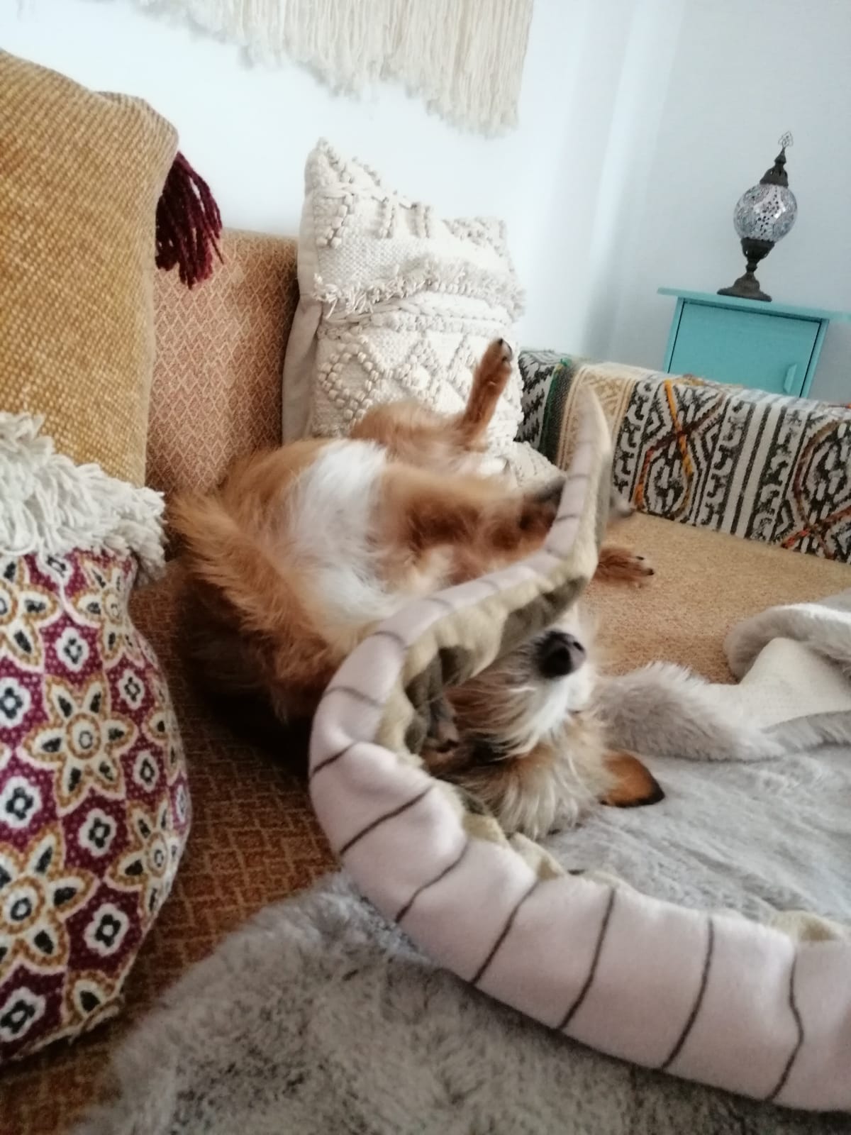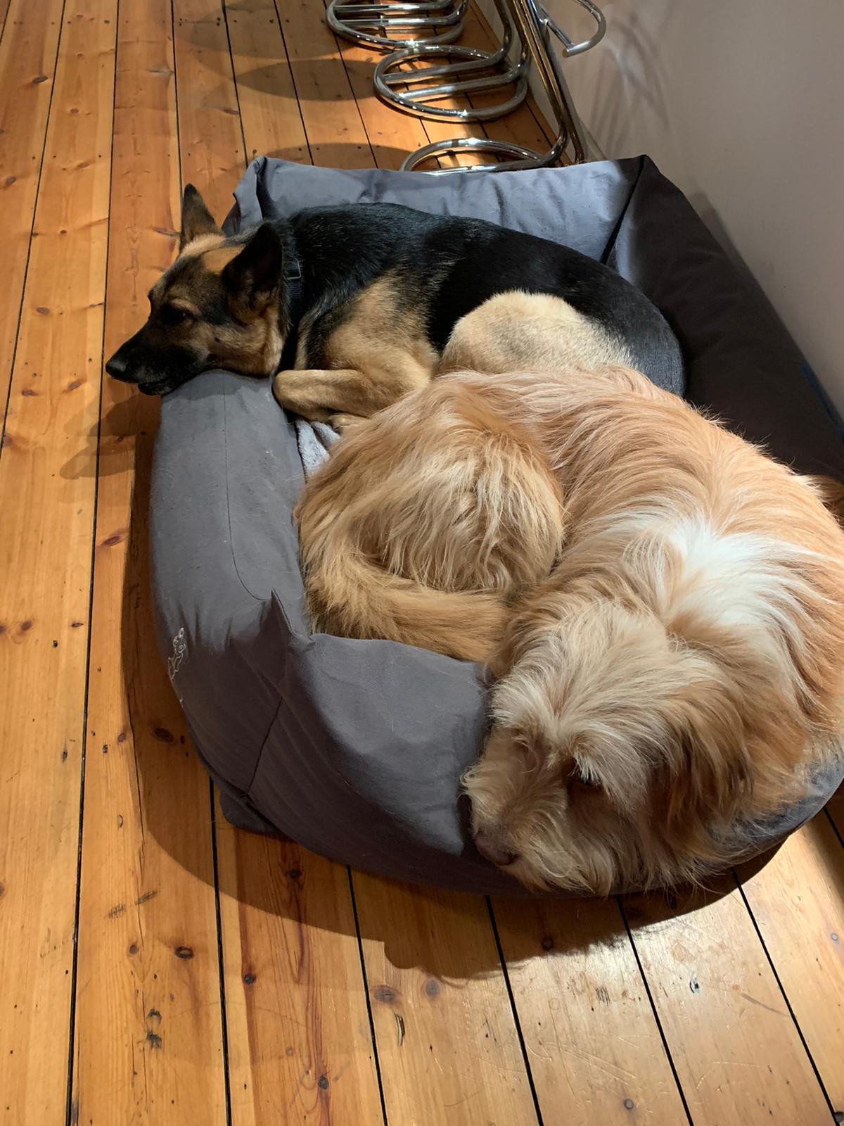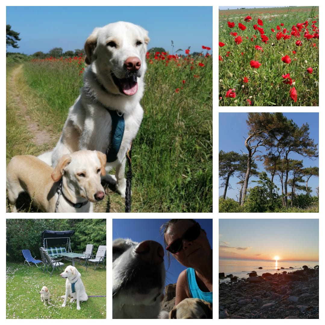 Wir sind gerade wieder mit meiner Schwester und Anhang in Skiveren in 🇩🇰 Dänemark. Gestern waren wir den ganzen Tag unterwegs, aber heute waren wir im Hundewald. Da war nur Rennen und Toben angesagt. Kaum im Auto fielen die Hunde dann "ins Koma".