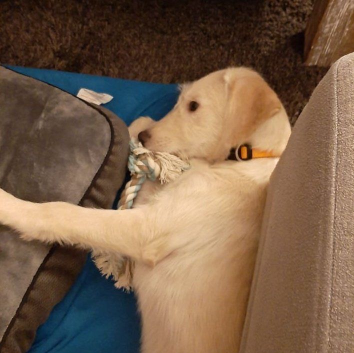 Letzte Woche haben wir Blanca das "Mantrailen" gezeigt. Sie ist ein Naturtalent, beim zweiten Mal wusste sie schon das sie den "Mann mit dem Käse 🧀" suchen muss.